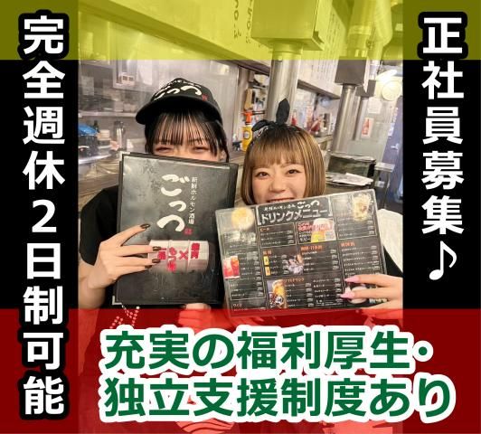 【正社員/ホールスタッフ】未経験者大歓迎◆選択できる休日制度(完全週休二日制有)◆充実の福利厚生制度 新鮮ホルモン酒場 ごっつ 天満店 焼肉ホルモン屋のホールスタッフ DREAM REALITYグループの正社員募集! 現在活躍中のスタッフは20代・30代の若いメンバーを中心に経験豊富なミドル・シニアまで幅広い年代の明るく元気な仲間がたくさん! だから、未経験の方も安心して会社・職場にスグに慣れて楽しく勤務することができますよ♪ 丁寧な研修制度や育成制度など万全の体制でお待ちしています! 大阪を中心に30以上のブランド・約100店舗の飲食店を運営している当社DREAM REALITYグループでは、正社員約250名、アルバイトパート1400名が勤めています。 充実した福利厚生制度や選択できるシフト・休日制度で、大切にされたいワークライフバランスに合わせて勤務することが可能です。 又、当社で定年まで勤務できるキャリアアップ制度はもちろん、独立支援制度やのれん分けなど将来の夢をバックアップする環境もしっかりとご用意しています。 DREAM REALITYは従業員の「夢の実現」を応援する会社です! ぜひ当社の充実した環境で、一緒に夢に向かって進みませんか! 新しいチャレンジを全力でバックアップします!!