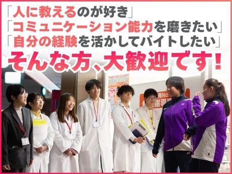 職場環境 【従業員構成】 ★[教室の|ω・*)]★ 先輩スタッフに聞いてみた! +-+ 生徒さんが、どうしたら *楽しみながら勉強できるか *モチベーションが上がるのか を意識しながら指導しています! 私も勉強が好きではなかったので…! 自発的な質問が増えたり、 自習に来る回数が増えたり、 生徒さんの変化感じる瞬間が とっても嬉しいんです! ───────────────── ★大学生が活躍中★ 在籍している講師の90%は大学生! 学業やサークルとの両立も応援します!