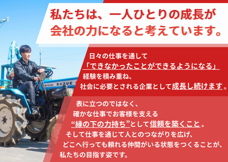 仕事内容 ✅年間休日128日/土日祝休み ✅残業ほぼナシ!嬉しい定時退勤 ✅即戦力募集! ==================== *事業拡大フェーズを一緒に つくる仲間、募集します。 当社は現在、事業拡大に伴い 新たな仲間を募集しています。 成長途中の組織だからこそ、 一人ひとりの意見や行動が ダイレクトに反映される環境です。 決められた業務だけでなく、 「もっとこうしたら良くなる」 「新しいことに挑戦したい」 そんな想いを大切にしています。 ==================== <バッファローウイングズ>が どのようなモノを取り扱い、 どのようにお客様の手に届けているのか といった流れを業務を通して 覚えていただくところから始め、 徐々に幅を広げ成長してくださると 嬉しいです! 【仕事内容】 ・製品管理業務全般 ・WEBマーケティング ・業務改善、仕組みづくり など ・来客対応 ※経験・適性に応じてお任せします 棚卸業務やヤード作業で 手で運べるくらいの小型農業機械を運んだり 在庫チェックをしたりなど、 外作業が発生することに 抵抗のない方は大歓迎です! 自分にできるか不安な方や 実際にどんな業務をするのか気になった方は お気軽にお問い合わせくださいね! ==================== いきなり無理は言いません。 できることから丁寧にお伝えしていきます。 出来ることからスタートしていきましょう! もちろん、できることが増えれば きちんと給料というカタチで評価します! 分からないことがあれば 躊躇わずに何でもきいてください! ==================== < バッファローウイングズについて > 豊橋市や田原市を中心に、日本で生産された 小型農業機械やトラクター、油圧ショベル、 トラック、自動車といった車両を企業から 中古で買い取り、カンボジアを中心とした 東南アジアやアメリカに販売している会社です。 日本製の農業機械は品質が高く 丈夫であるため、需要が高いことが特徴。 そんな日本が誇る技術で”食”の基盤を支え、 日本と世界を繋ぐきっかけになれるよう 現地に何度も足を運び続けた結果、 カンボジアだけでなく、アメリカでの 会社の設立も実現させました! とはいえ、日本国内ではまだ 豊橋にある本社のみ。 これからもお客様の要望に応え続けるため 販売・買取の拡大はもちろんのこと、 国内での事業拡大も視野に入れています。 国境を越えたオンラインでのネット販売 (越境Eコマース)を利用し、中古自動車や 自動車部品の輸出に挑戦する予定です。 そんな新しいプロジェクトで 顧客ひとりひとりを大切にしながら 今後さらに会社を発展させるために、 即戦力として活躍してくれる仲間を 募集しています!