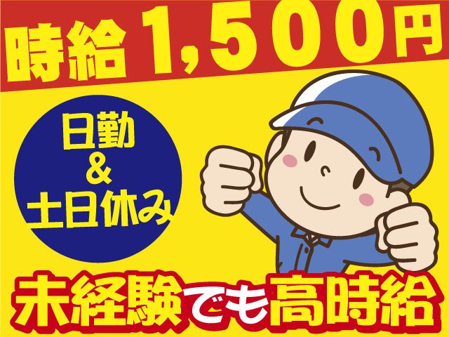 時給1,500円の高時給!寮完備・送迎あり! 夜勤なし/土日休みでプライベートの時間も充実!