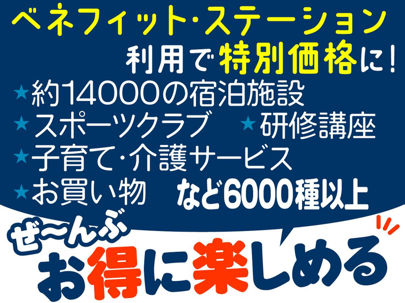 【保険制度】 雇用保険、労災保険、健康保険、厚生年金 待遇・福利厚生 【福利厚生】 ■交通費支給(月上限5万円) ■有給休暇(入社6ヶ月後) ■社会保険完備 ■制服貸与 ■夜勤手当あり ■研修制度あり ■社員宿泊割引制度 ・全国の東横INN宿泊本人30%、家族知人20%割引 ■各インセンティブ毎月有 ・稼働率に応じたインセンティブ(5000円~1万円/月) ・売上達成奨励金 ・会員獲得手当 ・深夜手当 ・資格手当1500~3000円 ■資格取得支援(入社後の取得に限る) ・TOEIC540点以上:3000円 ・英検3級:2000円 ・簿記3級:2000円 ・パソコン検定4級:1500円 ・秘書検定2級:1500円 ・MOS Word/Excel上級:2000円 ■退職金制度(勤続3年以上) ■チャレンジ制度 ・支配人や本社部門へのキャリアアップも目指せます ■従業員割引/ベネフィット・ステーション →弊社と提携している会員制で、 お得な待遇が受けられるサービス。 約14000施設の宿泊施設に 会員価格でお得に利用ができたり、 その他にも・・・ ✅スポーツクラブ ✅介護・育児 ✅健康管理 ✅研修講座 ✅エンターテイメント ✅物販 etc 6000以上の様々なライフサービスを 揃えています。 これらすべてのメニューを 会員特別価格で 利用することができるサービスです♪