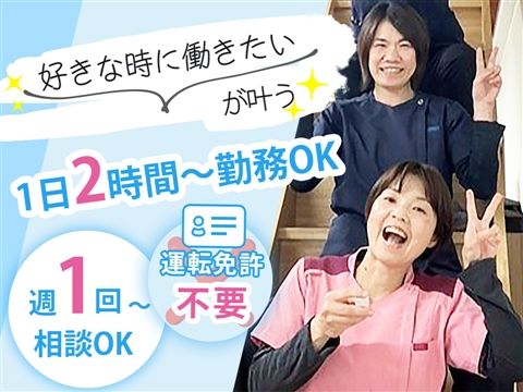 勤務時間 8:50~17:20の間で1日2時間以上 (休憩は実働6時間以上で60分) ※お好きな曜日・時間で勤務可能 ※1日2時間・週1日~、Wワーク可! ※土日祝休み可 ※曜日固定相談可能