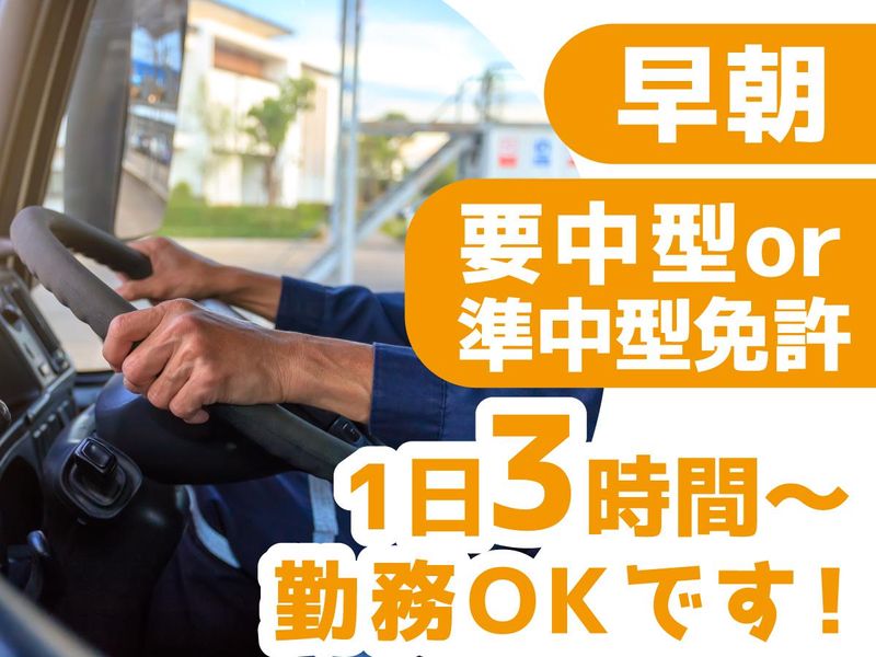 求めている人材 ✅必須 準中型免許もしくは、中型免許 ※トラック運転経験をお持ちの方や配送業務の経験、 食品パッケージや梱包資材の取り扱い経験をお持ちの方は即戦力として活躍可能です。 ~こんな方にもおすすめの求人です~ ・物流・倉庫業などの経験をお持ちの方 (軽作業、仕分け、入出荷、検品、ピッキング、倉庫事務、伝票印刷など) ・配送、配達、ドライバー、運転手などの経験をお持ちの方 ・早朝に働きたい方 ・早朝スタッフの経験をお持ちの方 (オフィスビルや商業施設などの清掃スタッフ、 工場などの製造ラインでの検査・パッケージングスタッフ、 ホテルの朝食準備やフロントスタッフ、ジムやフィットネスなどの早朝スタッフ)