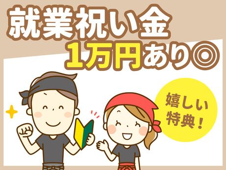 資格 ・未経験OK! ・調理経験がある方、歓迎! ・扶養内・ブランクある方も歓迎! ・WワークもOK <歓迎条件> ・飲食での経験がある方 ・人と話すことが好きな方 ・料理に興味がある方 <こんな方にピッタリ> □授業終わりにそのままバイトしたい □同年代が多い職場がいい □就活に活きる接客スキルを身につけたい □子どもが学校に行っている間だけ働きたい □夕飯の準備に間に合う時間で働きたい □久しぶりのパート復帰で不安がある <こんなタイプの方は特に活躍しています> ・明るく挨拶ができる方 ・チームで働くのが好きな方 ・「ありがとう」と言われる仕事がしたい方 ・忙しい時間帯も前向きに楽しめる方 経験よりも 「人柄」と「やる気」を重視しています。