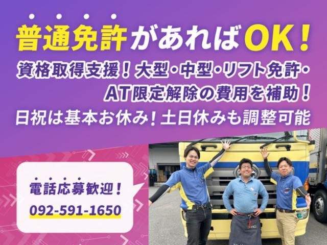 【普通免許があれば応募OK】AT限定解除費用補助・希望休取得OK・賞与年2回