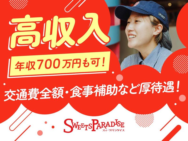 仕事内容 / その店長経験、 次のステージで活かしませんか? \ 「今の職場ではもう上がれない…」 そんな想いを持ちながら働いてる方必見! SweetsParadise(スイーツパラダイス)やスタッフを大切にしながら、 私たちと一緒に楽しくて面白いお店を作っていきましょう! 。*o。・―― ココが魅力 ――・。o*。 ◆月給42万円+年収700万円以上可! ◆仕事は段階的にお任せします! ◆コラボカフェで話題のスイパラで活躍! 。*o。・―――――――――――・。o*。 【 仕事内容 】 デザートバイキング店「スイーツパラダイス」の運営を手がけている当社。 最初は、店舗の店長業務をお任せ。 ゆくゆくはSVとして3~5店舗ほどの店舗を管轄していただきます。 ~ 入社後の流れ ~ まずは基本業務から現場の流れを把握していただき、 その後すぐに、店舗運営・スタッフ教育・売上管理などの マネジメント業務をお任せします。 店長候補→店長→SV…とキャリアアップが可能◎ 店長経験をお持ちの方には、早期に 複数店舗を統括するエリアマネージャー候補としてご活躍いただきます! 。*o。・―― 仕事の魅力 ――・。o*。 経験をいかした管理業務も 。*o。・―――――――――――・。o*。 「SVやマネージャーを目指したい」 「店長経験を活かしてキャリアアップしたい」 など、志望動機は何でも構いません。 当社は、入社後の頑張りを正当に評価するのが社風。 意欲があればいくらでもキャリアアップを目指せる環境です! そして、頑張りに対しては給与でしっかりと還元。 安定した収入はもちろん、 社割やまかないなどの福利厚生も充実しているので、 将来も安心して働き続けられます。 。*o。・― 私たちについて ―・。o*。 ニーズに合わせた事業展開 。*o。・―――――――――――・。o*。 1954年の設立以来、当社は洋菓子の企画・開発から製造までを一貫して行ってきました。 また、デザートバイキング店「スイーツパラダイス」をはじめとする店舗運営も手がけ、 人気アニメやゲームとのコラボ企画など、時代のニーズに応じた事業展開を行っています。 < スイーツパラダイス > お客様がそこにいるだけで楽しめる空間を作っています。 コラボした限定カフェやオリジナルメニューがSNSで話題になることも◎ 働くスタッフにとっても楽しい環境が整っています。