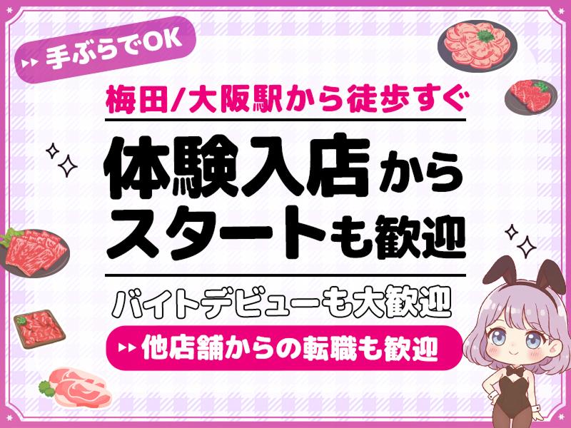 関西発!梅田に初出店!オープニング☆キタエリアに新感覚のお店が誕生!焼肉とバニーガール!【祝い金10万円は即支給!】高時給3000円以上可!17時からオープン!週1日・終電上がりOK!未経験・学生さん大歓迎!
