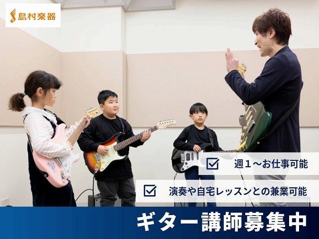 仕事内容 ギターの先生・ギター講師(準委任契約) 小さなお子様から大人の方まで幅広い年代の方が通われる音楽教室にて、 ギター講師としてレッスンを担当していただきます。 週1日~担当でき、レッスン担当曜日の希望が出せるので、演奏活動や自宅レッスンと両立している先生も多数活躍しています。 曜日毎にレッスン担当店舗を相談し決めます。週5日レッスン担当している先生も多く、レッスンをしっかり担当したい方にもお勧めです。 <未経験の方も安心> ・レッスン開始前に研修を受けられます。レッスン指導経験の無い方も安心してスタートできます。 ・生徒さんは初心者の方が多く楽しんでいただいてます。 ・幼児~お子さんの生徒さん多数。子育てのご経験を活かせます。 ・40代~50代の方も活躍中。 ・レッスン開始後も先輩講師からのアドバイスの機会もあり安心してレッスンいただけます。 ・スタッフも音楽好き、困った時には相談できます。 <もちろん経験がある方にもオススメ> ・カリキュラムやテキストの指定は無いのでご自身の経験を活かし自由にレッスン内容を組み立てられます。 ・講師同士の情報交換の機会もあり、指導力アップを目指せます。 ・生徒様向けコンクールへの生徒様出場などにより指導力を磨く機会も多数あります。 駅チカ・ショッピングセンター内の明るい店内でのお仕事になります。 コミュニケーションを大切にしています。人と関わるのが好きな方歓迎です。 会社主催の生徒様向けのイベントなども多数あり、生徒様の成長と共にやりがいを感じていただける機会があります。 受動喫煙対策屋内喫煙可。ただし、特定の喫煙可能室または喫煙目的室のみ