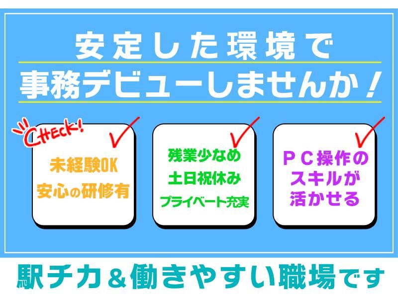 求めている人材 ・高卒以上 ・PCの基本操作(Word・Excel)が出来る方 ・事務経験者優遇 事務・接客経験のある方大歓迎! ・ブランクがある方 子育て中の方や子供が大きくなってから入社した方も活躍中! ※将来、お住まいから片道1時間30分以内の就業先に異動する可能性あり
