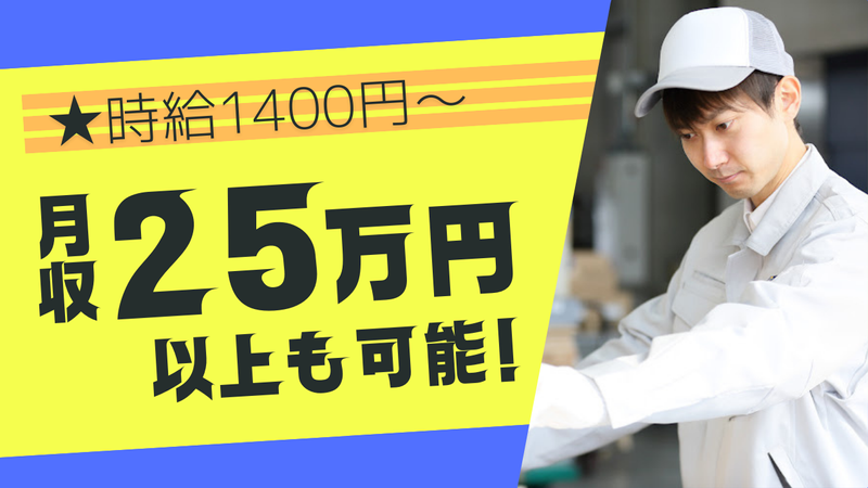 時給1,400円~1,750円 給与詳細 基本給:時給 1400円 〜 1750円 【給与例】 給与例 【月収例】 時給1400円×7.75h×22日+残業 =月収25万円以上も可能!