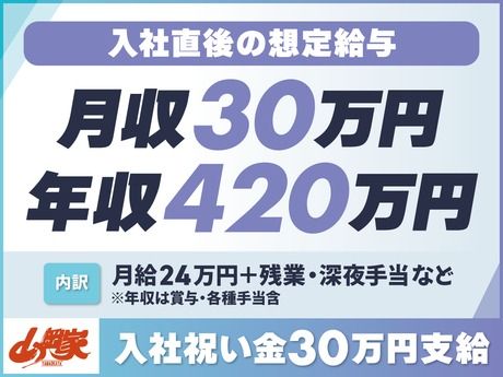 仕事内容 【30~40代から未経験で入社した社員も多数】 SNSやメディアで日々話題になる山岡家のラーメン。 ― でも、選ばれているのはラーメンだけではありません! 実は「働く場所」としても多くの人に支持され、 30~40代から未経験で入社した男性社員も多数活躍中! ====================== 成長加速&エリア拡大中に伴い、 正社員を“積極採用中”!(2024年実績:180名以上) \ 四国初進出! / 4月3日、香川県に「高松中央インター店」がオープン予定! \ 博多区にも出店 / 4月22日、九州福岡に「福岡月隈店」がオープン予定! 福岡市内2店舗目、博多区初出店です!! 【スムーズに業務を始めていただくために…】 入社後は、茨城県つくば市にある自社の トレーニングセンターで研修を実施(3泊4日) ※研修中の交通費・宿泊費は全額会社負担! ※研修中もしっかり給与支給で安心スタート ====================== \ここがポイント/ 1)初年度年収420万円!キャリアアップ実績も多数  ̄ ̄ ̄ ̄ ̄ ̄ ̄ ̄ ̄ ̄ ̄ ̄ ̄ ̄ ̄ ̄ ̄ ̄ ̄ ̄ ̄ ̄ ̄ ̄ 【昇進例】※3年目で店長の場合 ・入社1年目(一般社員):年収例420万円 ・入社2年目(アドバンス社員):年収例470万円 ・入社3年目(店長):年収例580万円 ★頑張り次第で、最短1年で店長昇進も可能! 2)待遇充実!東証スタンダード上場企業の安定基盤  ̄ ̄ ̄ ̄ ̄ ̄ ̄ ̄ ̄ ̄ ̄ ̄ ̄ ̄ ̄ ̄ ̄ ̄ ̄ ̄ ̄ ̄ ̄ ̄ ◎今なら!入社祝い金30万円支給!! ◎残業代は1分単位で全額支給(みなし残業なし) ◎昇給・賞与は年2回!! ◎特別休暇を合わせて、実質年休111日! ◎有給平均取得日数7.5日(土日取得もOK!) ◎プライベートの都合に配慮したシフト希望休OK ◎女性だけでなく、男性社員の育休取得実績あり ◎20年以上活躍する社員も在籍する定着率の高さ ====================== 【お仕事について】 まずはホール業務からスタートし、 店舗全体の流れや雰囲気をつかみます。 その後、キッチン業務や洗い物、 仕込みなども担当していただきます。 <将来的には…> 接客・調理だけでなく、店舗運営など 店舗業務全般をお任せします。 (スタッフ教育、シフト管理、売上・コスト管理など) \\ 未経験者も段階的に学べます! // ◆冊子のマニュアルや、店舗のタブレットでも 視聴できる動画教材などをご用意。 何を・どの順番で覚えればいいかが明確で安心! ◆全店舗、食券制&設備が整った店内。 丁寧な接客と、スープ・ネギ・チャーシュー すべてを「お店で手作り」にこだわる山岡家の スタイルに集中しやすい環境です! ※接客・マニュアル・動画はすべて日本語です。 ※また、衛生記録なども日本語で記入します。 ====================== 【明確な評価制度で、着実にキャリアを形成】 頑張りを正当に評価する仕組みが整っている山岡家。 未経験で入社して3年で店長に昇進する社員も多数! <スタッフの声> ※中途入社・30代男性 頑張った分だけお給料にも反映されるのが嬉しい! ネギの切り方やチャーシューの仕込みなど、 スキルを覚えるたびに評価されるから励みになります。 \ 教科書スキル習得で給与UP! / 年2回の定期昇給の他、教科書(オリジナル冊子)に沿って 順番にスキルを習得するたび昇給・昇進のチャンスあり! *教科書1冊目完了で、月給+5000円(目安:入社半年) *社内試験(実技・筆記)合格で、月給+8000円 *教科書2冊目完了で、月給27万円以上(アドバンス社員) *教科書3冊目完了+店長研修を受けて、店長昇進! (店長:月給43万円~/ミドル店長:月給46万~60万円) ====================== <異動も “成長チャンス” として全力サポート> 週休2日制の正社員には全国転勤がありますが、 山岡家の異動は「経験の幅が広がる機会」として活用。 新しい環境で視野が広がることで、 評価につながりやすい仕組みになっています! <異動や転勤の際も安心の制度あり!> *全国への転勤費用・引越し費用は全額会社負担 *異動に伴う帰赴任手当なども全てサポート! 【丸千代山岡家について】 全国に190店舗以上のラーメン店を運営中。 売上好調!前年比平均10%以上の成長率! 47都道府県への出店を目指し、新店OPENも続々。 セントラルキッチンを設けず 全店直営&店内手作りにこだわる姿勢で、 根強いファンもたくさんいます! リピート率はなんと75%超え!(自社調べ) <売上高> 186億7600万円(2023年1月期) 264億9400万円(2024年1月期) 345億8500万円(2025年1月期)*前年比130.5%! 《HP》https://www.yamaokaya.com/ 《採用HP》https://recruit.yamaokaya.com/