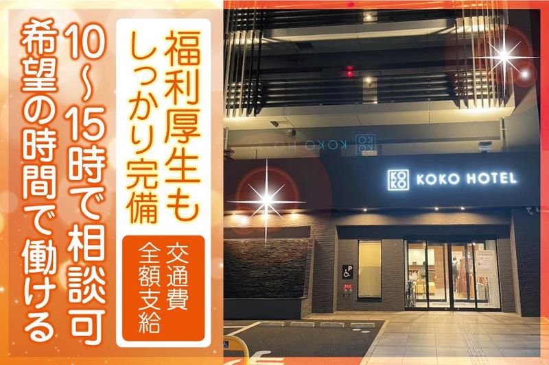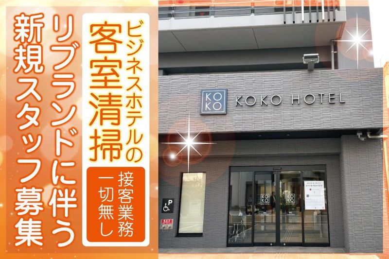 仕事内容 \リブランドに伴う新規スタッフ募集!/ 綺麗なビジネスホテルでの 主に客室内清掃をお願いします。 - ⭐接客業務は一切なし! ⭐人気の夜勤なしワーク! ⭐うれしい交通費全額支給! - 【具体的なお仕事は…】 ◆室内やバスルームなどの清掃 ◆ベッドメイク ◆通路やロビーなどホテル共有部の清掃 ✅難しい作業も一切は一切ありません! 清掃作業は家事の延長でできるお仕事ばかり♪ 未経験の方も多数活躍中! 高所作業や機械トラブルがあれば、 専門のスタッフが行うのでご安心ください◎ ご自身の決まった清掃に専念して頂けます☆ 1人10部屋程担当頂きます。! - 【 勤務地 】 KOKO HOTEL 高松 ▼香川県高松市瓦町2-2-3 ▼瓦町駅より徒歩4分 *2025年9月にリブランドオープン! 「ホテルウィング」から「KOKO HOTELS」へ 生まれ変わったホテルです! - \\おすすめPOINTをご紹介!// ⭐接客業務は一切なし! →周りの目を気にしたり、お客様に気を遣ったり… なんて心配はありません◎ しっかり集中して、作業に没頭できますよ! ⭐日勤専属!→15時にお仕事終了♪ 自分の時間がしっかり確保できます! 家庭と両立しながら働くスタッフも活躍中! ⭐交通費全額支給! →通勤にかかる交通費は全額支給しますので、 安心して通勤できますよ◎ ことでん「瓦町駅」から徒歩4分でアクセスも便利! ⭐達成感が格別♪ →髪の毛やゴミがひとつもない床、 シーツがピンッと張ったベッド、 キレイに並べられたアメニティ… どれをとっても、清掃を終えた後の達成感は抜群!! 目に見えて成果がわかるので、 やりがいを実感できるとスタッフからも好評です◎