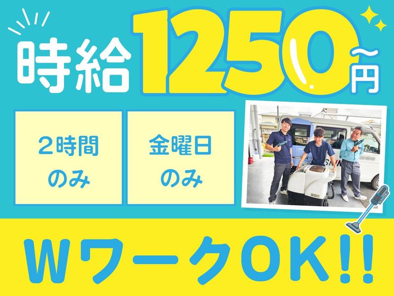 仕事内容 *―――――――――――――* 【ここがポイント!】 ■高時給1250円■ 短時間で効率よく稼げる! ■充実のOJT研修■ 会社で練習してから現場デビュー! 未経験でも安心して始められます♪ ■Wワークに最適■ 午後は別の仕事や趣味の時間にも◎ <仕事内容>――――――――― トイレ・廊下・更衣室など オフィスの清掃をお願いします。 掃除機、モップなどを使った シンプルなお掃除のみ☆ 1人で作業なので黙々と働けます! \会社で練習してからスタート/ 道具の使い方・掃除方法などを 先輩と一緒に練習してから 実際の現場に行くので安心です◎ 【面接地】 大阪府豊中市服部南町2-8-32 阪急宝塚線「服部天神」駅から徒歩5分
