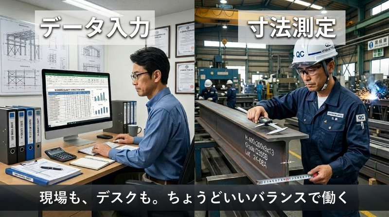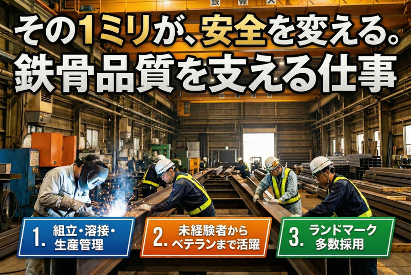 仕事内容 \鉄骨製品の品質チェック&データ管理/ ⏩メジャー・ノギスを使った寸法測定 ⏩溶接部の外観検査・歪みチェック ⏩検査データの入力・報告書作成(Excel使用) ⏩出荷前の最終チェック・検品確認 建物の安全性を支える“最後の砦”となる重要なポジションです! ▼簡単な募集内容▼ 【雇用形態】正社員 【給与】年収:280万円~350万円 【勤務時間】8:00~17:00 【勤務地】兵庫県宍粟市山崎町宇野293 【募集要件】未経験歓迎♬学歴不問 ★この求人のアピールポイント★ ✅️現場50%+デスクワーク50%のバランス型業務! ✅️未経験OK!測定・品質管理をイチから学べる ✅️建物の安全性を支えるやりがいある仕事 ✅️女性も活躍中!長く働ける職場環境 ✅️安定した鉄骨メーカーで将来性◎ 【どんな会社?】 株式会社キタコウは、建物の骨格となる「鉄骨」を製造する企業です。国土交通大臣認定のHグレード認定工場として、高い耐震性と品質を誇る鉄骨を提供しています。 関西大学千里山キャンパスや三菱電機神戸製作所など、ランドマークとなる建築物にも採用されており、確かな技術力と実績を持つ企業です。 最新の工作機械や溶接ロボット、大型クレーン、CADシステムを導入し、一貫した生産体制を構築。安定した需要のもと、長く働ける環境が整っています。 【お仕事内容】 鉄骨製品の品質を守る検査業務をお任せします。 具体的には ⏩メジャー・ノギスを使った寸法測定 ⏩図面と照らし合わせたチェック作業 ⏩溶接部の外観検査・歪み確認 ⏩検査データの入力・報告書作成(Excel) ⏩出荷前の最終チェック・梱包確認 現場作業とデスクワークが半々のため、体を動かす仕事と事務作業の両方に携われます。 《入社後の流れ》 まずは測定器具の使い方や検査の基本を学ぶところからスタート。先輩社員がマンツーマンで丁寧に指導するため、未経験でも安心です。 徐々に図面の見方や品質管理の知識を習得し、専門性を高めていくことができます。 【会社の魅力】 ✅️未経験から専門スキル(品質管理・検査)が身につく ✅️コツコツ・正確な作業がしっかり評価される ✅️建築物の品質を支える社会貢献性の高い仕事 ✅️安定した受注基盤で長期就業が可能