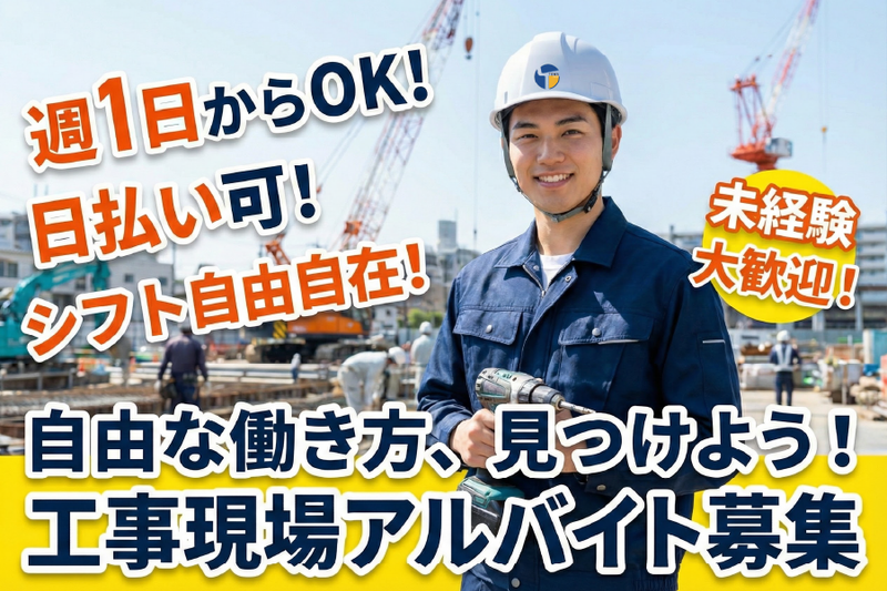 求めている人材 ◆業界・職種未経験OK ◆学歴不問 ◆掛け持ち・副業・WワークOK ◆1ヶ月以内の短期OK ◆長期歓迎 ◆ブランクOK ◆20代~60代活躍中 - 【大歓迎】 ◆少しでも建設現場で働いたことがある方 ◆短期 アルバイト・パートで効率良く 稼ぎたい方 ◆未経験だけど、現場の仕事を覚えて 慣れてきたら資格取得を目指したい方 ◆現場作業員 正社員、土木作業員、 建設業 アルバイト・パート、 解体工、重機オペレーター、溶接工、 塗装 アルバイト、建設作業員から 負担の少ない現場作業に転職したい方 ◆内装工事、クロス職人、リフォーム工事、 内装仕上げ、軽鉄ボード内装等室内現場 作業から転職して気楽に働きたい方 ◆工場作業員、フォークリフト作業員、 清掃スタッフ等 工場系ワークから転職したい方 ◆大工、解体作業員、土木工事、 外構工事、舗装作業員、 型枠大工、鳶工、塗装工事・塗装職人、 外壁塗装、防水工、金属塗装等 現場作業のメイン業務から サポート側で気楽に働きたい方など ※元気に挨拶ができて 身体を動かすことが好きな方※ そんなあなたを求めています。