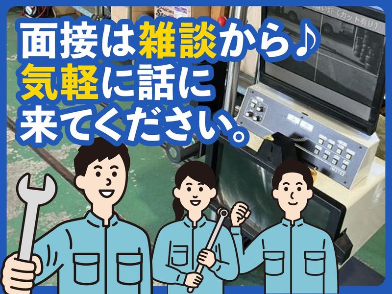 仕事内容 ー ▶▶POINT ー ✅残業少なめ →平均1日0~30分程度 ✅未経験歓迎! ✅整備経験の浅い方も歓迎! ✨社員への資格取得支援制度あり✨ ✨2級整備士資格取得を目指せる✨ ✅資格不問 ✅年齢不問 ✅ムリのない働き方ができる環境 ー ▶▶入社後の流れ ー ✅未経験&経験の浅い方は! →工場長のイトウさん(40代)のもと、 業務を覚えていきましょう。 <イトウさんについて> マジメで落ち着いた雰囲気のイトウさんは 整備も接客もこなすオールラウンダー。 「仕事は見て覚えろ」なんて言わずに、 しっかり教えてくれますよ◎ ✅経験のある方は! もしアナタが寡黙な職人タイプで 「接客は苦手」ということであれば、 イトウさんが接客対応をしますので 業務分担をしながら、協力して仕事を 進めていくことができます◎ ー ▶▶具体的なお仕事 ー ✅業務概要 ・車検点検 ・定期点検 ・一般整備 ・車検の持込、 ・お客様の車の引取・納車など 当社は信用第一確実整備で多くのお客様から 信頼され高い評価をいただいております◎ ー ▶▶働き方 ー ✅帰りやすい職場 定時は18時ですが、だいたいいつも 18:30までには帰っています。 先輩や上司も残っているし 「なんだか帰りにくい」 といったことはありません。 急ぎの仕事が発生したとしても 19:30には退勤しています。 ー ▶▶整備の特徴 ー ✅扱う車は? ■軽自動車/乗用車が70% 一般のお客様から依頼を受けて 車検や整備業務を行っています。 ■その他 企業から依頼を受けて リース車や配送車の定期点検も 行っております。 ※扱うとしても2~4トン車までなので 「部品が重すぎて持てない」なんて ことはないのでご安心ください。