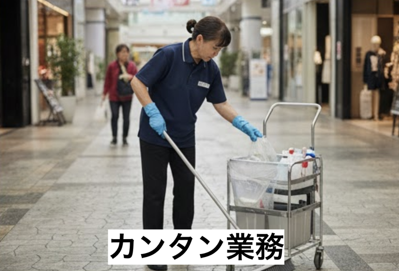 仕事内容 ショッピングセンター「ASOBOX」内での日常清掃をお願いします。 共用部の清掃: 床面の掃き拭きなど トイレ清掃: 営業中の女子トイレ清掃を含みます 特別な機械は使わないシンプルな作業が中心です。 普段の家事の延長でスタートできます。 ▼アピールポイント 【朝の3時間でサクッと収入】 7:30〜10:30の短時間なので、 午後は自由時間です。 【未経験からでも安心】 難しい作業はなし! 清掃のお仕事が初めての方も大歓迎です。 【履歴書不要で面接OK】 事前準備の手間なし! まずは気軽にお話ししましょう。 【交通アクセス良好】 「中津口」バス停から徒歩1分。 通勤ラクラク!!