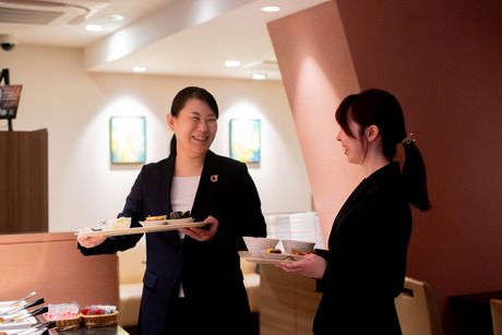 職場環境 【従業員構成】 <女性スタッフ中心に幅広い年代が活躍中!> ■主婦(夫)、Wワーカー、 ミドル~シニア世代と、幅広い方が活躍中! ■年齢問わず積極採用中! ■チームワーク良く、 皆で協力しながら 働いています。 <先輩たちの前職は…> カフェ・レストラン・食堂・居酒屋、 給食調理員、などの様々なジャンルの ご経験者が活躍中!