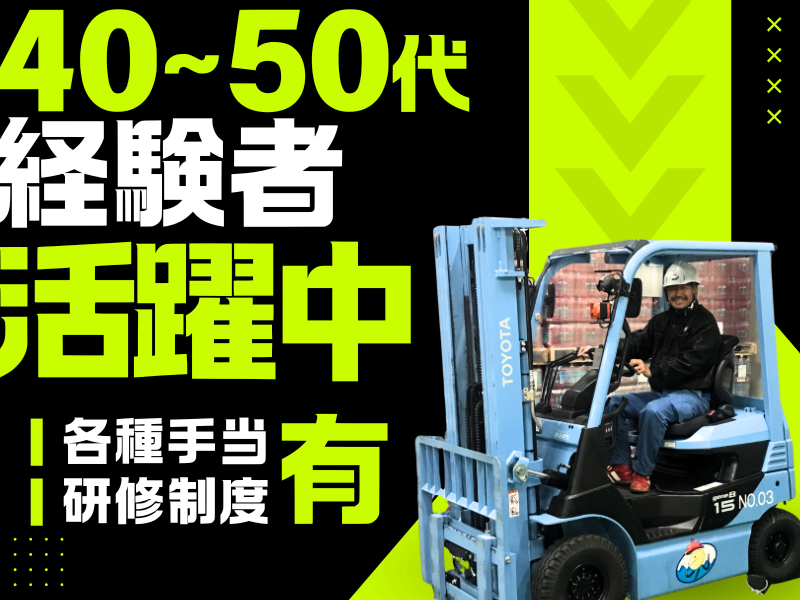 仕事内容 リフト作業のみ・月収30万円以上も可能 40代~50代のリフト経験者活躍中! 大手物流企業グループ 『大阪運輸株式会社』にて、 フォークリフトオペレーターを募集します。 【 大阪運輸で働くポイント 】 ◇9時~17時で日勤のみ・土日祝休み ◇業務は『リフト作業だけ』 ◇高卒・中卒・中退不問。 ブランク10年以上も歓迎です! 前職給与の相談も可能。 キャリア・年収モデルの相談や、 働き方の相談も歓迎◎ まずはお気軽に、ご応募お待ちしています! - 【 具体的な業務内容 】 ◇コンテナからの入出庫作業 ◇ピッキング作業 ◇仕分けした商品のトラック積み込み作業 ◇出荷作業サポート など フォークリフトを使用した、 リフト作業をお願いします。 取り扱うのは、日用雑貨や ホームセンターの商品。 足腰への負担もなく働けるお仕事です。 【 入社後の流れ 】 現場で安全教育を実施します(1時間) 上司がマンツーマンでついて、 一つ一つ指導します。 ▼ 実際に現場にて作業スタート! 上司もすぐ近くで作業をしているので わからないことがあれば いつでも質問できる環境です! - 【 こんな方を求めています 】 ◇リフト作業・現場作業をしながら、 年収やキャリアを上げていきたい。 ◇頑張りを、【給与】や【評価】で ちゃんと還元される企業で働きたい。 ◇リフト作業が好きで、物流業界で 日勤夜勤の交代制のない企業で働きたい。 【 40代スタッフインタビュー 】 リフトの運転が好きなので、 20年ほど物流業界で長く働いています。 キャリアが上がるにつれて、 事務作業や管理業務が増えて、 現場の作業がなくなってしまったことに 疑問を感じ、当社に転職しました。 大手グループ企業でありながら、 当社はスタッフ一人一人をちゃんと評価し、 給与や昇進で還元してくれます。 キャリアアップしても、リフト作業を 続けられるところが何よりも嬉しくて、 好きなリフト作業で、 給与もキャリアも上がっています。 大手なので業務量も安定しているため、 この先も長く続けていきたいと思います。