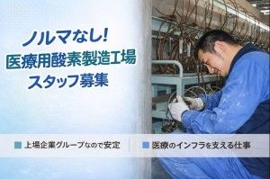 募集背景 業務拡大によりスタッフ募集 仕事内容 ◆高圧ガスの充てん作業 【1日の流れ】 (1)前日、回収した空ボンベをセット (2)充てん・検査 (3)充てんが完了したら容器置き場へ移動 (4)出荷報告、翌日の準備作業 基本的には(1)~(4)の繰返しになります。 空ボンベの容器移動から開始して、業務が慣れ次第 充てん作業や出荷作業をお願いします。 ガスに関する知識や充てんスキルが身につくため 最終的には工場全体の業務を担っていただきます。 ≪組織構成≫ 30代、40代、50代のスタッフが中心に活躍中です。 全体的に明るいキャラクターの方ばかりなので コミュニケーションは取りやすいです。 ≪入社後の教育≫ 教育計画は決まっており、1か月程度の研修で 充てん作業を習得することが可能です。 まずはガスボンベを安全に転がせるように 研修を行います。 業界・職種未経験者でも大歓迎です。 [醍醐味] 間接的ではありますが医療の現場を支えることのできるお仕事です。 [こんな人が活躍] 20代、30代、40代、50代、60代まで幅広い層の方々が活躍中です。 コツコツと仕事が出来る方!