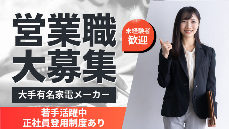 仕事内容 大手家電メーカーでのラウンダー業務です 家電量販店を数店舗担当し、定期的に訪問して頂きます。 既存の取引のある店舗の訪問になります(新規営業・開拓等はありません) 自社商品のPRのための売場作り・勉強会・展示作業を行うのが主な業務です。 土日には店舗に立ち、販売活動を行ってもらいます! - 応募資格:普通運転免許(社用車貸与) 簡単なPC作業が可能な方(Excel・PowerPoint等) 若手20代,30代,40代の男女が活躍中! 営業経験や家電量販店の勤務経験ある方大歓迎! ※パート・アルバイト経験でもOKです - 《お仕事開始までの流れ》 ①エントリー:WEB、TELでお気軽に応募下さい ↓ ②面談:ご来社いただき、勤務についてのご希望などを伺います 来社が難しい方には、リモート面談や出張面談にて対応する事も可能です ↓ ③提案:あなたのスキルシートを作成し、クライアントへ提案します ↓ ④勤務開始:決定後、晴れて勤務開始です! 未経験からの在籍者多数います!