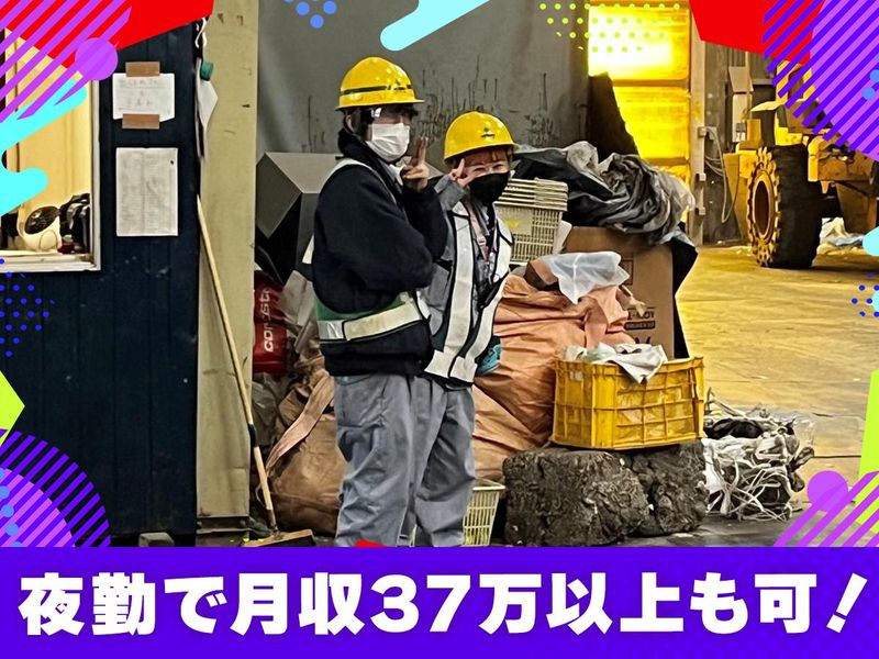 仕事内容 【✨この求人のポイント✨】 ✅夜勤専門でとにかく稼げる! ┗⭐月収37万円以上も可能! ┗⭐週払いOK! ┗⭐うれしい仕出し弁当あり! ┗⭐男性スタッフ活躍中! ┗⭐職場内や設備はとても清潔! ┗⭐勤務日・時間も柔軟に対応! ✅無資格でも重機の資格取得支援あり! 重たい作業は重機を使って、 体に負担をかけずに働けるように、 無資格の方でも会社の全額負担で 資格取得することができます! ✅自分にあった雇用形態が選べる アルバイトでも正社員でも、 自分の生活スタイルに合った 働き方を実現可能です♪ どちらの働き方でも、 責任者を目指すことが可能です! 責任者になると、役職手当で お給料が月1~1.5万円UP! 半年で役職に就いた人もいます。 <夜勤アルバイトの魅力は?> ・時給アップで効率よく稼げる! ・時間やシフトの融通が利く! ・昇給もしっかりあります! ・慣れてから正社員を目指すのもOK! ・月収37万円以上も可能です! ━━━━━━━━━━━━━━━━ 【✨お仕事内容✨】 ◎主なお仕事 ・リサイクルのための選別・仕分け作業 ・工場の清掃作業 主にこれだけ! 始めやすいシンプル作業で 未経験の方も活躍中! ◎重機の資格がある方は… 重機オペレーター(フォークリフト) もお任せしします! ━━━━━━━━━━━━━━━━ 【✨当社の強みについて✨】 ⭐常にニーズがある安定基盤 ・SDGsの取り組みも増え、より リサイクル業界の注目度もUP! ・昇給チャンスも多数 ・若手活躍中!平均年齢は31歳 ・安心の待遇も充実しています (資格取得支援・週払い・仕出し弁当) ⭐働きやすい環境の整備 ・みなし残業の時間を削減 ・物価高に伴い給与のベースUP など 働きやすい環境を整えています ・男女別トイレシャワー室完備 (お手洗いは作業中いつでも行けます) ・作業着、マスク、ゴーグル支給 ・重機内に消臭剤の設置 ・休憩室あり ・夏場はスポーツドリンク支給有