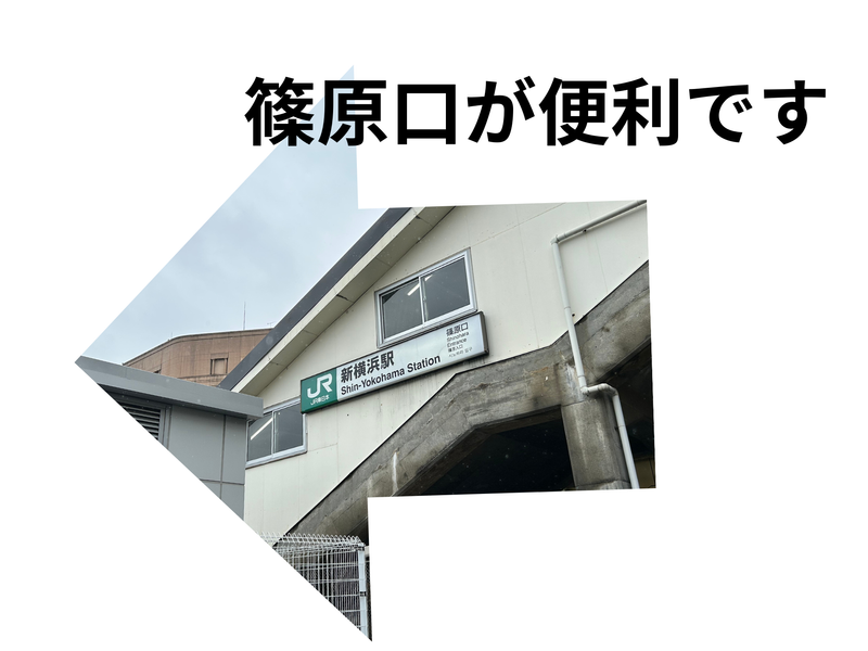 交通・アクセス 各線「新横浜」駅 「篠原口」出て右折☞高架下のファミリーマートの前をくぐって左折(徒歩10分程度)