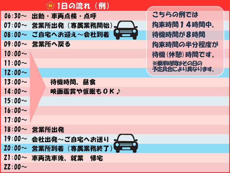 仕事内容 =タクシーから、ハイヤーへ= 「運転の仕事」が、 ここまで変わるとは思いませんでした。 日本交通で、タクシー乗務員として2年。 その後、ハイヤー事業部から声がかかり、 ハイヤー乗務員を経験した社員がいます。 「同じ“運転の仕事”なのに、ここまで 世界が違うとは思わなかったですね。」 - ■ ハイヤー乗務員の仕事って、何が違う? 一番の違いは“お客様との関係性”。 タクシーは > 「どちらまで行かれますか?」 ハイヤーは >「本日は〇時にこちらへお迎えし、 〇〇へお送りする予定でございます。 お食事のあとは、○へお送りいたします。 ご予定にお間違いは ございませんでしょうか?」 ――すでに“目的地”も“スケジュール”も 決まっているお仕事です。 お乗せするのは、 * 上場企業の役員 * 自治体のトップ * テレビで見るような著名人 落ち着いた方ばかりで、 トラブルはほぼありません。 「怒鳴られた」「理不尽に絡まれた」 そんな経験とは無縁の環境です。 - ■ 未経験でも大丈夫な理由 皆さん最初は完全未経験から スタートしています。 * 地理はどう覚える? →東京地理試験+実務で自然と身につきます *マニュアルはある? → 完璧な「顧客ファイル」が存在します。 道はもちろん、お客様に好まれる 座席の角度、車内温度、話し方迄 記載がございます。 - ■ 印象に残っているエピソード 空港送迎で、事故渋滞に巻き込まれたとき。 到着が間に合わないことをお伝えすると―― 「大丈夫ですよ。次の便と、 その次の便まで押さえてありますから」 怒られるどころか、気遣われた。 これがハイヤーの世界です。 ■ こんな方に向いています * 接客の質を大切にしたい * 落ち着いた環境で働きたい * 運転の仕事を“一段階上”にしたい * タクシー経験を活かしたい * 未経験だけど、丁寧な仕事がしたい 「運転は好き。でも、今の環境には正直疲れている」 そんな方にこそ、知ってほしい仕事です。 まずは話を聞くだけでも構いません。 あなたの“次の選択肢”として、 ハイヤーという道を。 \【WEB面接】実施中!/ 応募開始から完了まで約1分♪ ✅赤坂・銀座・日本橋勤務です♪ 店長から転身している社員続出⁉ ノルマなし、数字に追われない、 心に余裕ができたと大好評です◎ =================== 接客と運転のみ!!!! =================== 【安定保証】✅月給40万円 【経験不問】✅未経験者9割以上 【研修充実】✅安心スタート 【運転時間】✅実質1日4時間 【仕事内容】✅接客&運転のみ ◆当社“日本交通”について◆ ・:・:・:・:・:・:・:・:・:・:・:・:・:・:・:・:・:・ ドライバー数、車両保有数 ⇒共に【業界最大規模】!! 自社で【研修センター】を保有! ⇒業界最大手企業の充実研修✨ ▛▝▝▝▝▝▝▝▝▝▝▝▝▝▝ ▜ ◆研修内容をご紹介◆ 期間 :約1カ月半 導入研修 :運転の基礎知識 同乗研修 :実際に乗務体験 語学講習会:英語など 細かい所作、美しい運転技術、 東京都の地理、主要ルートなど 身につけられる内容です。 ▙ ▖▖▖▖▖▖▖▖▖▖▖▖▖▖▟ ★元店長&業界未経験入社 先輩社員の声をご紹介(52歳) ≡≡≡≡≡≡≡≡≡≡≡≡≡≡≡≡≡≡ 最後の転職先としてもぜひ♪ 元々接客が好きで、アパレル業界の 接客業に励んでいました。仕事を 重ねていくにつれて、マネジメントや 売上管理、クレーム対応に在庫管理など 好きな接客以外にとられる時間が 多くなり、転職を決意しました。 このお仕事は、最後までお客様に ひたむきに向き合うことが出来るので 今はやりがいを胸にお仕事をしています。 さらに、店長職ではなかなか休みが 取れませんでしたが、今では週休2日が キープできているので、身体も健康に なりました。接客でここまで給与が 高水準で安定していることも とても魅力的です。いいことばかり 言って、うさん臭く感じられるかも しれませんが、ぜひ一度応募して 話を聞いてみてください。 こんな世界もあるのか、と新しい 発見につながりますよ! ━-━-━-━-━-━-━-━ 【仕事内容】 「ハイヤー運転手・役員送迎」 法人契約している企業様の 役員の方や、スペシャルゲストを 目的地まで送り届けるお仕事です。 運転時間:1日4時間程度。 待機時間: 目的地までの経路を確認し コンビニの場所や喫煙所など お客様に必要な情報もリサーチ! 待機中は、読書・仮眠などもOK! 運転する車両: センチュリー/レクサスLS/クラウン、 クラウン・マジェスタ/レクサスES、 アルファード・ハイエース等 ※お客様の車両(外国産車等)を 運行していただくこともあります。 ━-━-━-━-━-━-━-━ ⌛1日のスケジュール例⌛ ▼ 8:30 出社、スケジュールと車両確認 ▼11:00 お客様先へ。目的地へ送迎。 ▼12:00 目的地から戻り1件目終了 ▼13:30 昼食を終えて、次のお客様先へ ▼16:00 2件目の送迎を終えて帰社 ▼18:00 車両清掃・事務処理 ▼19:00 お疲れ様でした!
