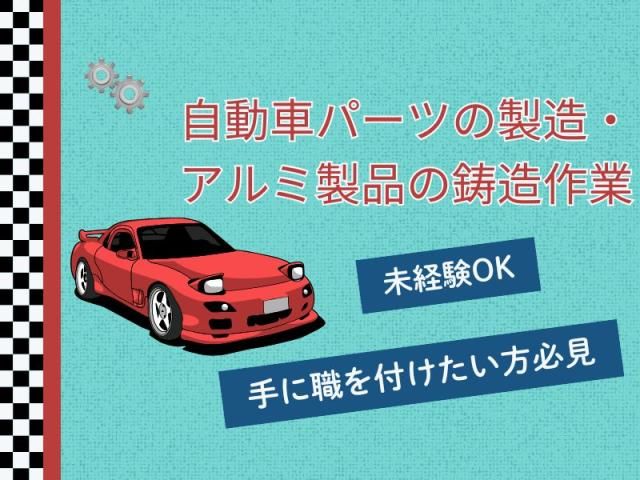 未経験OK!自動車パーツの製造・アルミ製品の鋳造作業☆ 社会福祉貢献度の高い地域の夢工場を目指す企業です。 【ものづくり】への向上心と誇りを持った社員さんたちと、 一緒にいい汗流しませんか? ▼地域No1レベルの高収入 ▽頑張り次第で正社員登用の可能性あり ▼ガッツリ稼ぎたい方や交代勤務が苦手な方は、 夜勤だけでも相談OK!! もちろん日勤のみでも相談可能♪ ▽交通費は実費支給でお財布の負担をサポート! ▼各種社会保険完備でいざという時も安心です!
