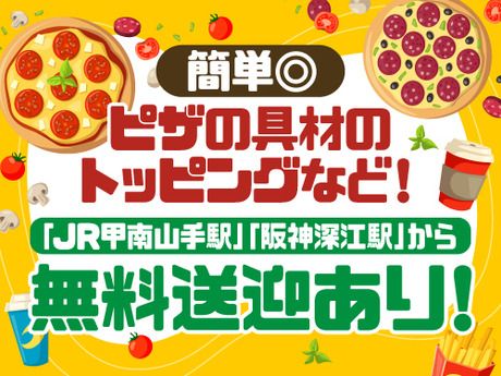 仕事内容 【お仕事内容】 <人気の大手チルドピザ製造工場!> ピザの具材をポンポンっとトッピングしたり、 目視検査などのお仕事です! 食品製造や工場勤務の経験不問! 覚えやすい簡単作業です!難しい作業はありません! 丁寧に教えてもらえるので、安心してスタートできます! ★20~40代の女性スタッフ活躍中です! ★主婦、アルバイト、パート、フリーターの方も多数活躍中! ★モクモク作業なので人見知りな方も大丈夫です! ★面接日や勤務開始日は柔軟に調整可能です。お気軽にご相談ください! ★もちろんスグ働けなくてもOK! 【アピールポイント】 ●無料送迎バスあり!(JR甲南山手、阪神深江駅) ●新作などご家庭に嬉しいおみやげを持って帰れる事もあり! ●残業していただける方には軽食サービスあり!(残業は希望される方のみでOK) ●全額週払い制度あり! ●土日祝はお休み! 【勤務地】 ●兵庫県神戸市東灘区深江浜 ●阪神深江、JR甲南山手より無料送迎あり! ●自転車・バイク通勤もOK!