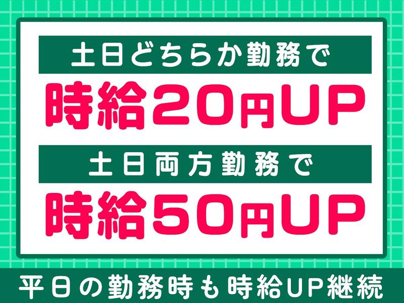 時給1,230円以上 給与詳細 基本給:時給 1230円 〜 ※経験・スキルなど考慮 ★22時以降は時給25%UP ★昇給あり ================= 土日働ける方は基本時給UP♪♪♪ ================= ✅土日どちらか働ける方は時給20円up ✅土日両方とも働ける方は時給50円up ※時給upは土日の勤務だけではなく 平日の勤務時でも同じ時給を継続♪ 【給与例】 給与例 ▽学生さんの場合(週3日/夕方からの短時間) 時給1230円×1日3h×月12日 =月収4万4280円 ▽フリーターさんの場合(週5日/フルタイム) 時給1230円×1日8h×月20日 =月収19万6800円 ※月4週換算で計算した目安金額