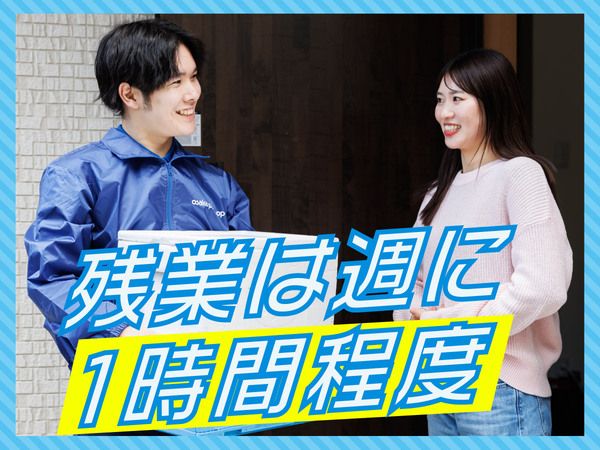 勤務時間 固定時間制 <勤務時間について> 実働時間: 1月あたり 160.0時間 9:30~18:30(実働8時間、休憩60分) *平均残業時間週1時間程度 *概ね18時40分には退勤しています *他シフト有 <1日の仕事の流れ> ◆09:30 体操&朝礼 ◆10:00 いつもの組合員さんのもとへ出発! ◆13:00 昼休憩/食堂でご飯おかわり◎ ◆14:00 午後も頑張るぞ! ◆17:30 帰社 ◆18:00 ミーティング ◆18:30 終業!今日もお疲れ様でした! 平均所定労働時間: 1月あたり 160.0時間