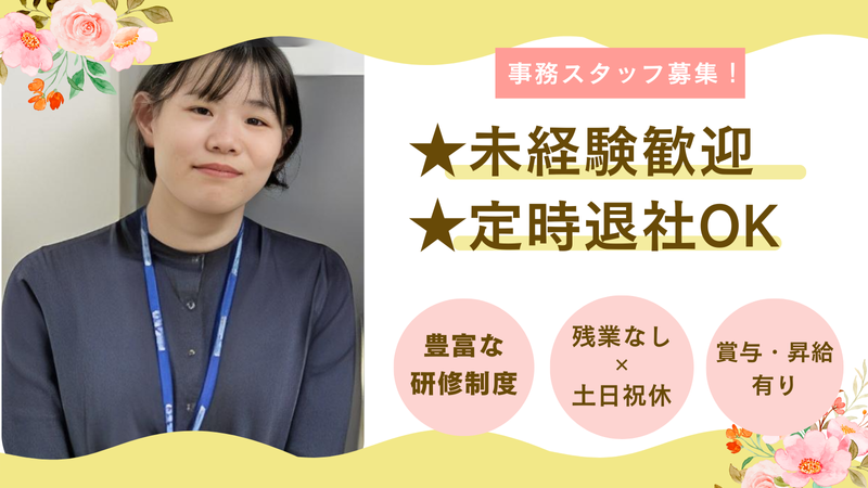 選考プロセス <応 募 後> Web書類選考+アンケート <一次選考> 面接(※) <最終選考> 適性検査+面接(※) <内 定> メールにて連絡→入社 (※)一次・二次のどちらかで、PCのスキルチェックを行います。 《補足》 ・選考結果につきましては、3営業日以内にご連絡を差し上げます。 ・応募から1カ月以内の入社が可能です。 ・面接日・入社日につきましては、お気軽にご相談ください。 求人だけではわからないことや不安なこともあるかと思います。 ぜひ、面接の際にお聞きください!