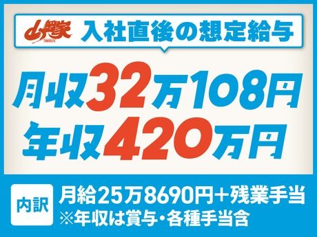 仕事内容 【年収420万円】経験を活かしながら、負担を抑えて高収入◎! 《飲食経験者歓迎》※ジャンル不問 深夜でも多くのお客様にご来店いただく山岡家。 「飲食店経験」や「接客スキル」を活かしながら、 生活リズムを整えて働きたい方にもオススメ! ★らーめん店の経験がなくても大歓迎です! <夜勤専従で高収入!> 入社1年目で、年収例420万円可能!! 家族との時間も自分時間も 圧倒的に増える働き方で、転職直後から高収入◎ ====================== 【週休2日制へのキャリアチェンジも可】 まずは週休3日制でプライベートと両立。 「もっと働きたい」「キャリアを積みたい」と 思ったら、週休2日制へ転換もできます◎ 実際に、働き方を変えながら キャリアアップを叶えた社員も在籍中! <社員の声>※入社3年目・店長・30代  ̄ ̄ ̄ ̄ ̄ ̄ ̄ ̄ ̄ ̄ ̄ ̄ ̄ ̄ ̄ ̄ ̄ ̄ まずは家庭と両立できる範囲での異動など、 負担を抑えた働き方ができる「週休3日制」で入社。 前職と比べて“サービス残業なし”などクリアに 働けることや、福利厚生も充実して安心でした。 環境に慣れていく中で、山岡家の仕事が どんどん面白くなり「週休2日制」へ転換。 評価制度がわかりやすく、スキルが認定される たびに昇格し、今では店長として働いています。 *店長職の収入例 年収580万円(月給43万円+賞与年2回+各種手当) ====================== ◆「週休3日制の正社員」のオススメPOINT◆ 【1】22時~出勤、週休3日×年間休日156日  ̄ ̄ ̄ ̄ ̄ ̄ ̄ ̄ ̄ ̄ ̄ ̄ ̄ ̄ ̄ ̄ ̄ ̄ ̄ ̄ 働き方改革の一環として導入した、 「週休3日制・夜勤専任」の正社員制度。 転居を伴う転勤がなく、地元でライフスタイルに 合わせた働き方が可能になりました! <30~40代で入社した男性活躍中> 家庭を持った方にも選ばれている山岡家。 住み慣れた場所で長く働きたい方や、 家族との時間をゆったり取りたい方にも◎! 【2】東証スタンダード上場企業の安定基盤  ̄ ̄ ̄ ̄ ̄ ̄ ̄ ̄ ̄ ̄ ̄ ̄ ̄ ̄ ̄ ̄ ̄ ̄ ̄ ̄ ■残業代は1分単位で全額支給(みなし残業なし) ■昇給・賞与は年2回!! ■プライベートの都合に考慮したシフト希望休、 有給の取得も可能!(土日・連休の取得もOK) ■男性社員の育休取得実績もあり! 【お仕事について】 まずはホール業務からスタートし、 店舗全体の流れや雰囲気をつかみます。 その後、キッチン業務や洗い物、 仕込みなども担当していただきます。 <将来的には…> 接客・調理だけでなく、 衛生管理・設備管理など、店長不在の 時間帯の店舗運営も含めてお任せをします。 \\ 中途社員も段階的に学べます! // ◆冊子のマニュアルや、店舗のタブレットでも 視聴できる動画教材などをご用意。何を・ どの順番で覚えればいいかが明確で安心! ◆全店舗、食券制&設備が整った店内。 丁寧な接客と、スープ・ネギ・チャーシュー すべてを「お店で手作り」にこだわる山岡家の スタイルに集中して技術を身につけられる! ※接客・マニュアル・動画はすべて日本語です。 ※また、衛生記録なども日本語で記入します。 【丸千代山岡家について】 全国に190店舗以上のラーメン店を運営中。 売上好調!前年比平均10%以上の成長率! 47都道府県への出店を目指し、新店OPENも続々。 セントラルキッチンを設けず 全店直営&店内手作りにこだわる姿勢で、 根強いファンもたくさんいます! リピート率はなんと75%超え!(自社調べ) <売上高> 186億7600万円(2023年1月期) 264億9400万円(2024年1月期) 345億8500万円(2025年1月期)*前年比130.5%! 《HP》https://www.yamaokaya.com/ 《採用HP》https://recruit.yamaokaya.com/