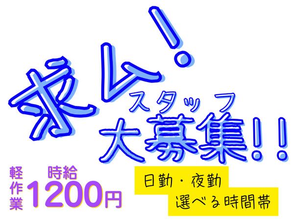 勤務時間 シフト制 <勤務時間について> 【日勤帯】☆☆☆ 9時00分~18時00分(実働8時間、休憩60分) 【午後帯】(現在充足) 17時00分~24時00分(実働6時間、休憩60分) 【夜勤帯】(現在充足) 20時00分~3時00分(実働6時間、休憩60分) ※お好きな時間を選べます!! ※日勤は週4~相談可 ※午後勤・夜勤は週3~相談可(扶養内勤務可)