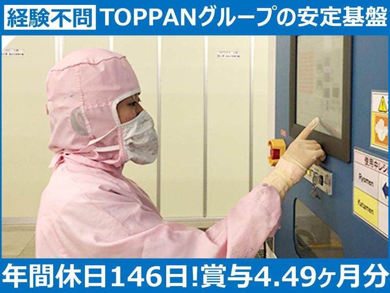 仕事内容 【安定企業で、無理なく長く働ける製造職】 ・TOPPANグループ(東証プライム上場)の工場 ・賞与年2回/計4.49ヶ月分(前年度実績) ・年間休日146日 ・未経験スタート多数/OJTで段階的に習得 ・20代〜30代で年収460万〜620万円の実績あり - ・ - ・ - ・ - ・ - ・ - ・ - ・ - ・ - ・ - < 仕事内容 > パソコン・スマートフォン・ゲーム機、 ネットワーク機器や車載機器など、 身近な電子機器に使われる半導体電子部品の 製造を行う仕事です。 工場内で、生産装置を操作しながら、 決められた手順に沿って部品をつくっていきます。 (具体的には…) ・画面の指示に従った装置の操作 ・部品や材料のセット、交換 ・完成した製品のチェックや検査 *最初は先輩と一緒に作業し、 慣れてきたら少しずつ担当範囲を広げていきます。 適性や希望を考慮して、 無理のない業務からお任せします。 [主な製品] FCBGA └ 半導体(チップ)を支え、 データを速く・正確に伝えるために 欠かせない土台のような部品です。 - ・ - ・ - ・ - ・ - ・ - ・ - ・ - ・ - ・ - 【TOPPANエレクトロニクスプロダクツ】 TOPPANグループで培った、 細かく・正確につくる技術を活かし、 映像をきれいに映したり、データを高速で 処理したりするための部品を製造。 身近な電子機器の「中身」を支える 部品をつくっています。 IoTやAIが当たり前になるこれからの時代に、 欠かせないモノづくりを続けている会社です。