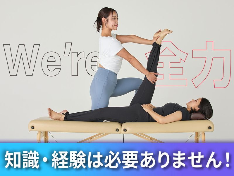 求めている人材 未経験歓迎! 土日出勤できる方 ●経験不問 ●無資格OK ●Wワーク・副業OK \こんな方にオススメ/ *体を動かすことが好きな方 *人を癒す仕事をしたい方 *人と接することが好きな方 *スキルアップしたい方 *自分の力で稼げるようになりたい方 *成長し続けられる居場所を探している方 *美容業界に興味がある方 ●身体について学びたい方、ストレッチ技術を学びたい方にもオススメ! ●指名料100%還元!業界トップクラスの高収入も可能なので、稼ぎたい方にも最適! ●11月に2周年を迎えたばかりの新しいお店なので一緒に成長できる! \こんなスキル・経験も活かせます/ ※必須ではありません。 ◎パーソナルトレーナーやストレッチトレーナーなどの経験者 ◎マッサージ、タイ古式マッサージ、ストレッチ、揉みほぐし、整体・矯正、骨盤矯正・骨格矯正などいずれかの専門知識や経験がある方 ◎ヨガ、ピラティス、ボディメイクに通った経験がある方 など ★身体の仕組みを深く理解するための解剖学から、お客様に合わせたパーソナルストレッチの技術まで、基礎から丁寧に教えていきます。”美容”について更に知識を深めたい方にもオススメです!