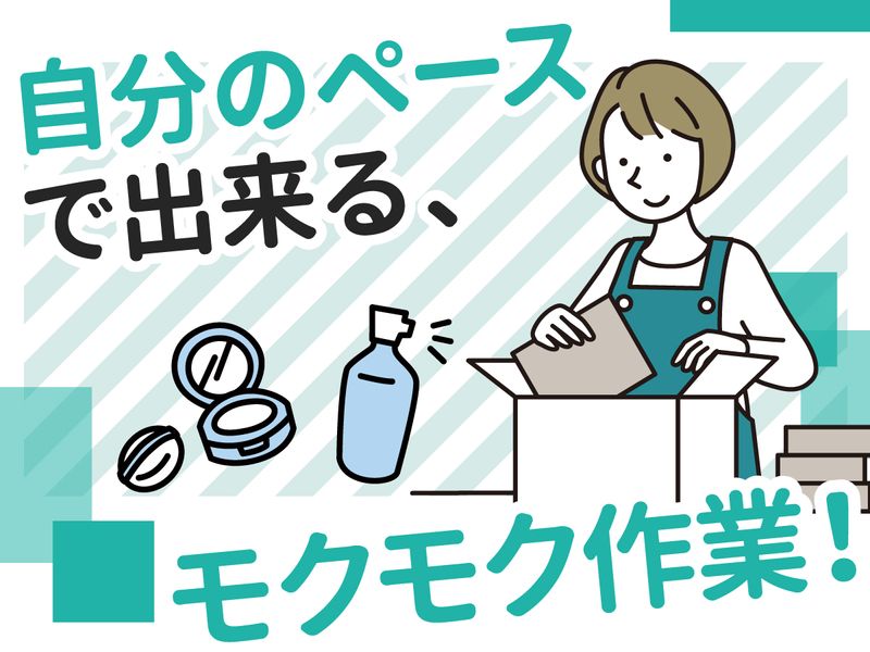 求める人材: *学歴不問 *未経験OK! *20代~40代の主婦さんが活躍中♪ <こんな方を特に歓迎> ・コツコツとした手元作業が好きな方 ・一人で集中して進める作業が得意な方 ・化粧品やコスメに興味がある方 ・安心できる待遇や環境で長く働きたい方 ・未経験から無理なくお仕事を始めたい方