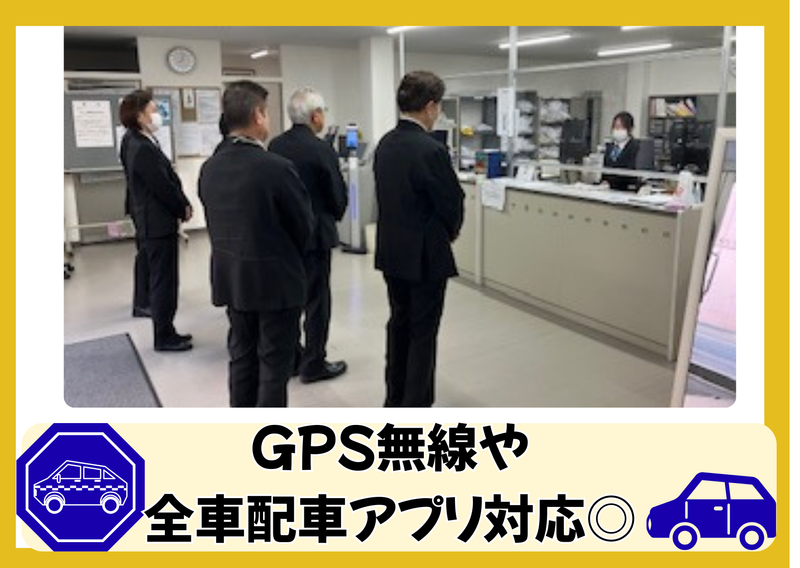 【保険制度】 雇用保険、労災保険、健康保険、厚生年金 待遇・福利厚生 【福利厚生】 *社会保険完備 *制服貸与 *資格取得支援制度有(規定) *マイカー通勤(車通勤)OK *バイク・自転車通勤OK *GPS・防犯カメラ全車搭載 *無線システムによる配車 *専用乗り場・施設多数有