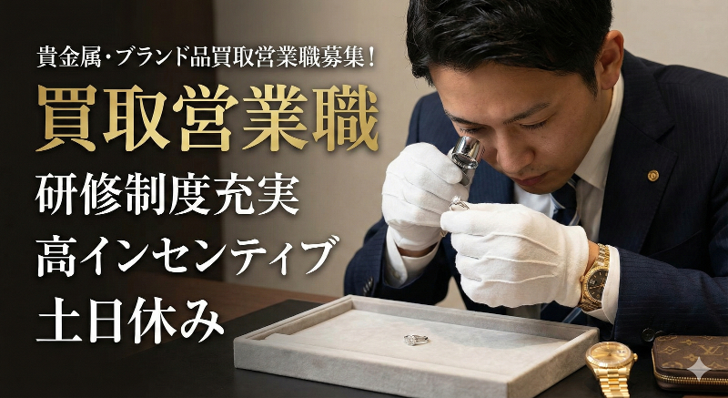 未経験から高収入へ!高インセンティブで成果を還元。充実研修でプロの目利きに。土日休みでプライベートも充実の買取営業