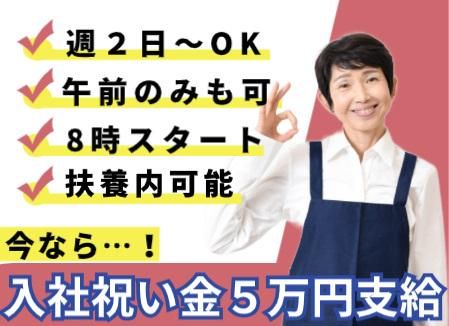勤務時間詳細 [1]8:00~17:00(休憩あり) [2]8:00~12:00 ★[1][2]選択OK♪週2~ご相談下さい ライフスタイルに合わせた働き方可能