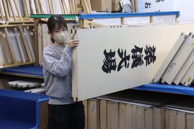 手書き文字の看板製作スタッフ(筆耕)