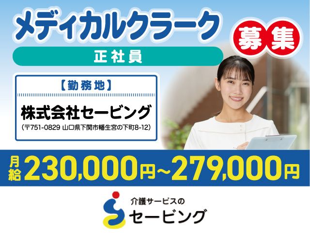 仕事内容 \【R7.10.1新規開設】医師に同行するメディカルクラーク募集!/ 【正社員・月給23万円~/賞与3ヶ月実績】 未経験歓迎、残業なし、託児所あり! 医療現場の最前線で、医師をサポートする重要な役割です。 <仕事内容> 【医師の診療を支えるプロフェッショナル!新規事業のスターティングメンバー!】 R7年10月1日に新規開設される訪問診療事業において、医師の診療に同行し、診療が円滑に進むよう全面的にサポートする事務業務です。 *この仕事は医療行為を一切行いません。 専門的な事務サポートを通じて、地域医療に貢献できます。 主な業務は ・電子カルテの代行入力(診察内容の記録) ・診断書や訪問診療報告書等の医療文書作成補助 ・医師と患者様・ご家族とのやり取りの記録補助 ・診療スケジュールの調整・確認 ・医師が診療に集中できるよう、その他周辺業務全般のサポート 訪問には社用車で医師に同行します。運転免許をお持ちであれば、移動もスムーズです。 <おすすめポイント> ◎新規開設事業のスターティングメンバー募集 新しい組織の一員として、訪問診療事業をゼロから創り上げる経験ができます。 ◎月給230,000円~!賞与は計3ヶ月実績 未経験歓迎の事務職としては高水準。昇給・賞与で頑張りに応えます。 ◎残業なし&託児所あり!子育てと両立しやすい 日勤固定で残業ゼロ。提携託児所があり、家庭と仕事の両立を強力にサポートします。 ◎資格・経験不問! 未経験から正社員として、医療の専門知識が身につくキャリアをスタートできます。 ◎医師を間近でサポート!医療現場のやりがいを実感 診療に集中できる環境を提供し、チーム医療の一員として地域貢献できます。 <求める人材> ・資格・経験不問!医療・事務職の正社員を目指したい方 ・医師のサポート役として、責任感とホスピタリティを持って取り組める方 ・パソコン操作(電子カルテ入力、文書作成)に抵抗がない方 ・託児所を利用しながら、残業なしで安定して働きたい子育て中の方 【応募をお考えの皆様へ】 株式会社セービングは、「人に寄り添う介護」を大切に、地域社会と共に歩んでいます。 今回募集するメディカルクラークは、R7年10月に立ち上がる訪問診療事業の最前線を担う、非常に重要なポジションです。 あなたのサポートが、地域医療の質を大きく左右します。 資格・経験は一切問いません。未経験から月給23万円~、賞与3ヶ月、残業なし、託児所ありという好待遇で、安定した正社員のキャリアを築きませんか? 医師の傍で働くという、他にない経験を通じて成長したい方のチャレンジを心よりお待ちしております。 ホームページ: https://e-saving.jp/