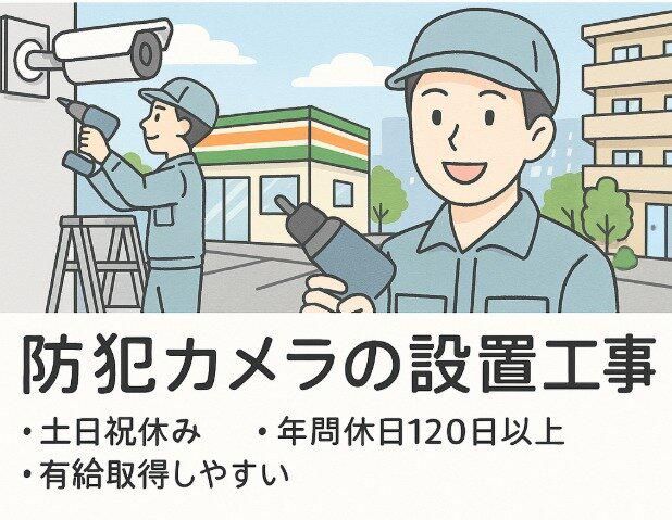 仕事内容 防犯カメラの設置工事を行う電気工事施工職を1名増員で募集します! \ アピールポイント / ✅日中作業中心でライフワークバランス◎ ✅先輩のサポートがあるので未経験でも問題なし◎ ✅安定した環境で長期キャリア形成♪ ✅お客様の安全・安心を支える仕事★ ✅土日祝休み(完全週休二日制) ✅年間休日120日以上♪ ✅有給も取りやすいのでプライベートも充実◎ - 【お仕事内容】  ̄ ̄ ̄ ̄ ̄ ̄ ̄ ̄ ̄ ̄ ̄ ̄ ̄ ̄ ̄ ̄ ̄ ̄ 防犯カメラの設定・設置やメンテナンス業務を通じて、お客様の安全・安心をサポートするお仕事です! 【具体的な業務】 防犯カメラの設定・設置やメンテナンス業務をお任せします! <LAN・同軸・弱電配線施工作業> ◆お客様との打ち合わせ コンビニエンスストア・集合住宅・量販店など ◆防犯カメラの配線・設置作業 ◆レコーダーへの接続と動作確認 ◆お客様への操作説明 【この仕事のやりがい&メリット✨】  ̄ ̄ ̄ ̄ ̄ ̄ ̄ ̄ ̄ ̄ ̄ ̄ ̄ ̄ ̄ ̄ ̄ ̄ ◆シンプルな操作システムで習得しやすい! ◆お客様立会いでの施工なので夜間・早朝作業はほぼなし◎ ◆日中時間帯中心で生活リズムを維持できる ◆ほとんどの案件が1日で完結するので達成感あり! 【働く環境】  ̄ ̄ ̄ ̄ ̄ ̄ ̄ ̄ ̄ ̄ ̄ ̄ ̄ ̄ ̄ ̄ ̄ ̄ ◆未経験からスタートして活躍している メンバー多数★ ◆チームでお互いに協力しながら仕事に 取り組んでいます! ◆様々な現場での工事があるので飽きずに長く 続けていただけます! ◆頑張りがきちんと評価される制度が確立◎ ◆努力が給与や役職に反映される仕組みが整っています ◆安定した収入と評価環境で将来を見据えたキャリア形成が可能★ 【成長サポート◎】  ̄ ̄ ̄ ̄ ̄ ̄ ̄ ̄ ̄ ̄ ̄ ̄ ̄ ̄ ̄ ̄ ̄ ̄ ◆未経験からでも先輩社員がサポートします! ◆徐々に一人で対応できる案件が 増えていきスキルアップを実感◎ ◆第二種電気工事士資格を お持ちの方はスキルを活かせる♪ ◆資格取得支援制度でキャリアアップをサポート! ◆職長・安全衛生責任者、高所作業車運転技能講習、 フルハーネス型墜落制止用器具取扱特別教育、第二種電気工事士、第一種電気工事士など 資格取得支援制度あります! 【安心ポイント】  ̄ ̄ ̄ ̄ ̄ ̄ ̄ ̄ ̄ ̄ ̄ ̄ ̄ ̄ ̄ ̄ ̄ ̄ 未経験の方でも安心してスタートできるよう、先輩社員がサポートいたします! お客様の安全・安心を支えるセキュリティのプロフェッショナルとして、一緒に成長していきませんか? 技術経験がなくてもOK◎ チームで協力しながら、スキルを身につけていける環境です 確かな技術を習得していきましょう!