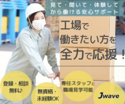 その他 友達と応募OK、職場見学可、面接1回 【ブランド名】 ジェイウェイブ 【事業内容】 人材派遣・人材紹介