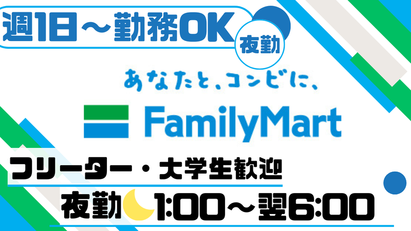仕事内容 \週1日からOK*/ サクッと稼げる時間帯! 大学生・フリーターさんも大歓迎♪ 「効率よく稼ぎたい!」 「サークルと両立!」「副業に!」 など ▶ 学校終わりに働く大学生さん ▶ 副業と両立するWワーカーさん ▶ プラスの収入にサクッと稼ぐフリーター 大学生・フリーターが中心の夜勤募集♬ ━━━━━━★お仕事内容★━━━━━━━ ・レジ対応 ・商品の陳列・補充 ・店内清掃 など 学業やプライベート、副業と両立しながら 効率よく稼ぎたいという方に人気の時間帯! ※お客様との会話や電話応対が多いため、 日本語でのコミュニケーション能力を重視。 ━━━━━━★働くメリット★━━━━━━ ✅ 週1日~OK ✅ 副業や扶養内での勤務もOK ✅ シフトの希望も相談し易い♪ 先輩が横で一緒にやりながら教えます! 「時給UPの夜間帯希望!」 など学生さんも活躍中の ファミマの夜勤帯のお仕事です! お客様も常連さんが多いので、 まずはお気軽にご応募くださいね☆
