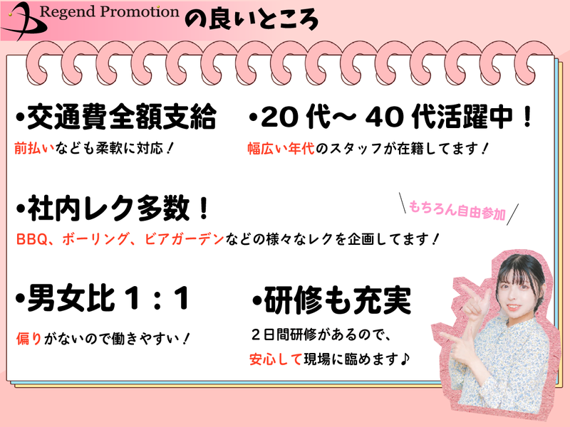 仕事内容 \ しっかり収入アップを目指せる / \\ 旭川に新規支店OPEN!! // ⭐ オープニングスタッフ募集 ⭐ 札幌支店では・・・ 未経験スタートでも月30万円越えのスタッフが多数! その理由のひとつが… <時給換算1400円以上>の高水準! いわゆる”高時給”のお仕事です! さらに、経験を積むことで 月40万円、50万円以上も目指すことが可能◎ 研修やサポート体制が整っているため、 未経験からでも段階的に収入アップを目指せます! 社員登用で安定を手に入れることも◎ 【 お仕事内容 】 家電量販店や商業施設などで行われる 携帯販売イベントでの勤務です。 ✅まずは ・ティッシュ配り ・イベント運営(ビンゴ・くじ引きなど) 笑顔で挨拶ができればOKです! ✅慣れてきたら ・立ち止まってくれたお客様へのお声がけ ・現在の携帯キャリアやお困りごとのヒアリング ・最適なプランのご案内 ※契約後の難しい手続きや事務処理は 専任スタッフが対応するので安心! 【 POINT! 】 ◆未経験も大歓迎! 営業や販売の経験も必要なし! イチからしっかり学べます! ◆インセンティブあり! ノルマはなし!頑張りをしっかり還元◎ 努力がそのまま収入につながります ◆短期or長期どちらもOK! ライフスタイルに合わせて働けます 自分のペースで無理なく続けられる環境です ◆給料の支払いは2週間ごと! 日払い・週払いにも対応可能 急な出費があっても安心です ◆シフトは自己申告制! スマホから簡単に翌月シフトを提出 学業やプライベートとの両立もばっちり ◆多種多様な勤務地 家電量販店や商業施設などから選択OK 通いやすさ重視&道内外出張案件もあり ◆職場見学OK 入社前に雰囲気や仕事内容を確認可能 見学後そのまま面接もOKです ー「ちゃんと稼げる」には理由がある。 無理なく収入も経験も手に入れませんか?✨