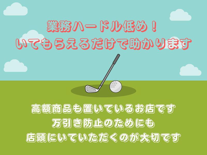 仕事内容 ✨2026リニューアル予定✨ アルバイト新規メンバー募集! ⭐知識や経験がなくても大丈夫 ⭐友達と一緒応募の採用率UP中 ⭐人気ブランドのリニューアル募集 ⭐未経験OKのクラブ販売 ⭐ゴルフに少しでも興味があればOK 勤務地:阿見アウトレット 雇用形態:アルバイト・パート 【業務内容】 新しい店長・同期と一緒に心機一転 リニューアル店舗で接客販売の アルバイトスタッフを募集します ゴルフクラブ選びのサポート 毎日のオープン・クローズ業務 店内美化 レジ業務 日報入力 【一緒に応募歓迎】 リニューアルオープンの大量募集! お友だちと一緒に採用される可能性あります 一緒にバイトできるかも♪ ⭐知識・経験不問 ⭐研修やレクチャーありで安心 ⭐ゴルフにほんの少しでも興味があればOK 多くの応募者が知識ゼロ・未経験! 少しでも興味があればご応募ください✨ 研修も充実しており馴染めるので安心! 専門的な話は社員が担当します 明るく笑顔でお店にいてもらえれば それだけでもう1億点◎
