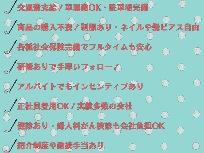 求めている人材 ゴルフの知識・経験はほんのちょっぴりでOK! やってみたい気持ち優先の選考です ⭐未経験歓迎 ⭐リッチ層のご来客なので治安◎ ⭐就職活動に役立つ ⭐意外と親しみやすいスポーツ \人気ポイント/ #スポーツ・フィットネス好きにも 接客販売やゴルフが未経験でも ジムやインストラクター経験いかせます! 運動が趣味の方も歓迎です #施設が充実 アウトレットモール内のお店です 休憩室で課題をしてる学生さんも多数! #おじの競技じゃない ゴルフは若年層や韓国からも大人気! なんかカッコいいかも…くらいで応募してOK