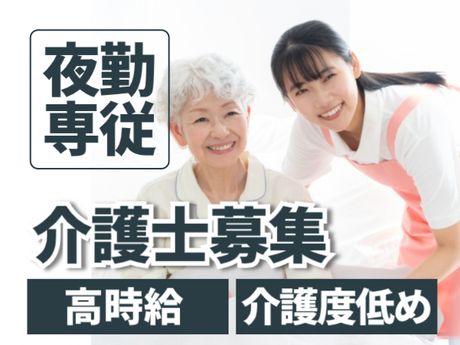 少ない勤務回数で高収入♪夜勤3名体制|週2回~相談OK|平均介護度低め!2.86程度|車通勤可能